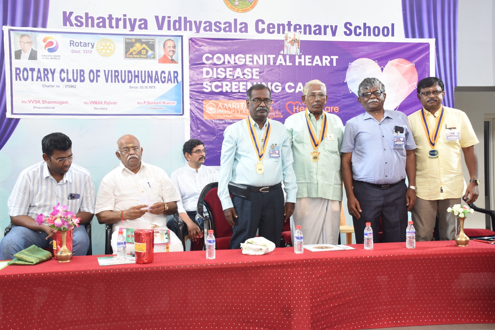 The Rotary Club of Virudhunagar, in collaboration with the Amrita Institute of Medical Sciences in Kochi, has conducted screening camps to identify children with congenital heart disease. For 30 children heart surgeries have been successfully performed by the Amrita Institute of Medical Sciences, with all the children leading normal lives and continuing their education.