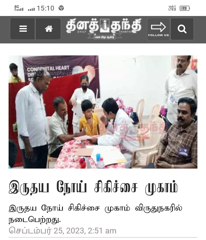 The Rotary Club of Virudhunagar, in collaboration with the Amrita Institute of Medical Sciences in Kochi, has conducted TWO screening camps one in Virduhunagar and other in Ambasamudram to identify children with congenital heart disease. For 57 children heart surgeries have been successfully performed by the Amrita Institute of Medical Sciences, with all the children leading normal lives and continuing their education