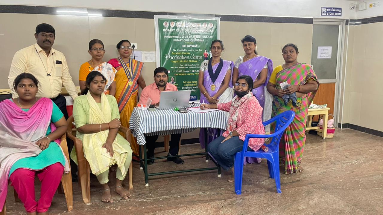 Free cervical cancer vaccination was successfully provided to 159 girls as part of this completed initiative. The program was jointly organized by the Rotary Club of Virudhunagar and the Inner Wheel Club. This project marks a meaningful step toward preventive healthcare and women’s well-being in the community.